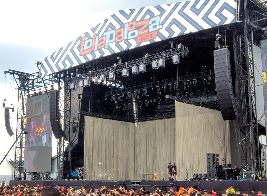 “Essa edição foi atípica, pois quase todas as bandas quiseram toda a planta de luz deles, sem adaptações. O Brasil está num patamar em que os lighting designers estrangeiros percebem condições em atender as demandas grandes e complexas, logo as exigências são, cada vez, maiores. Em outros palcos rolaram shows como do Imagine Dragons e Lanna Del Rey, cuja iluminação contou com seis carrinhos de luz exclusivos, de fabricação nossa”, destaca o lighting designer que há cinco anos atua no Lollapalooza e fez caber três mapas distintos num palco só – Pearl Jam, Red Hot Chili Peppers e do festival em si. “O processo de criação começou em janeiro. Tínhamos o line up dos gringos e vinha conversando com eles para alinhar exigências”, explica.