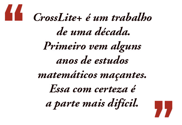 CrossLite+ é um trabalho de uma década. Primeiro vem alguns anos de estudos matemáticos maçantes. Essa com certeza é a parte mais difícil, onde desistimos várias vezes. Estudar não paga as contas do mês nem funcionários, o tempo que sobra é pouco.
