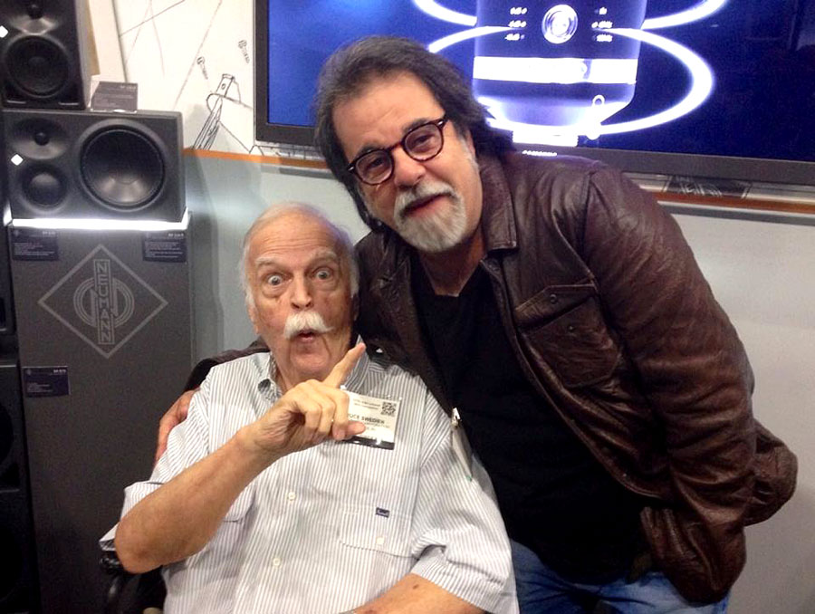 São inúmeros. Fui na Capitol fazer uma masterização, no estúdio C, porque o Al Schmit estava lá e somos amigos há muitos anos. Então, abriu a porta do estúdio, entrou o Bob Dylan e sentou-se ao meu lado. Ele estava trabalhando com o Al que, por acaso, conheci no Brasil quando veio fazer um disco do Djavan e ficamos amigos. Nos aproximamos, frequento a casa dele. Um encontro que realmente mexeu comigo foi o com o Bruce Swedien. Coincidentemente eu acompanhava a carreira do Bruce desde 1972. Quando eu era discotecário no clube onde eu tocava, onde eu mesmo fiz o som, percebi que tinha uns discos que soava absurdamente melhor que outros. Naquela época não tinha internet, nada disso. Então escrevi uma carta para a Brunswick Records - nunca esqueci disso - e eu queria saber o que era, porque o crédito não vinha no compacto simples, o single, que tinha muito na época. Vinha o crédito do produtor e do arranjador, mas não vinha o do engenheiro de som. Aí escrevi uma carta e eles responderam. Eles atribuíram isso ao fato de usarem o estúdio em Chicago de um engenheiro chamado Bruce Swedien. Aí comecei a acompanhar a carreira dele. Ou seja, quando encontrei o Bruce Swedien, eu já tinha escutado o Off The Wall, o Thriller e os discos que ele já fazia. Eu vim a conhecer ele pessoalmente por intermédio do Sergio. Eu nem morava aqui ainda. Vim fazer uma visita. O Sergio Mendes estava terminando um disco com o Bruce e eu fui e ele ... Eu nunca esqueci, era uma música chamada Raimbow Sand, que ele estava mixando e eu fiquei sentado no estúdio sem respirar, para ouvir. E aí, quando a gente foi fazer o disco do Sergio, o Bruce estava envolvido e aí eu ia para a casa dele. Ele tinha um estúdio aqui perto, e nós ficamos muito amigos. Por conta disso, fiz uma homenagem na Academia, tem uma divisão o conselho de produtores e engenheiros que eu sou o presidente. Então todo ano a gente faz eventos e homenageia. O primeiro foi o Geof Emmerick, Joe Cicarelli, o Bruce Swedien... Enfim, esses encontros aconteceram. O Bruce para mim era meu ídolo maior, porque eu já tinha um convívio com o trabalho ele desde 72. E teve mais. Por exemplo: o George Massemburg, outro grande ídolo meu, fui conhecer quando fui trabalhar no estúdio The Complex, que era o estúdio do Earth, Wind and Fire. Ele é o dono da marca GML de componentes de áudio profissional e de automação para mesa analógica. Lembro do dia que ele me chamou para mostrar o que estava construindo. Essas pessoas, são todos despojados, acessíveis, gente muito boa. São todos grandes ídolos que você cruza no dia a dia. Eles não põe a distância. Isso aqui não é comum. Se você se aproxima de uma forma que não seja inconveniente ou numa hora errada, você é muito bem-vindo.