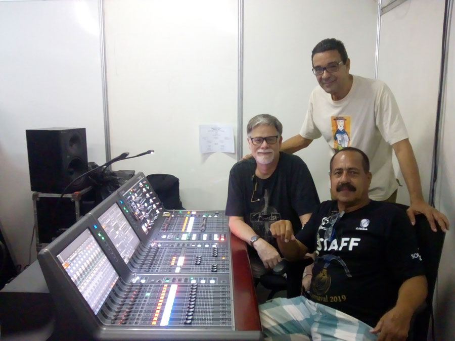 “O primeiro carnaval que fiz foi 2001, 2002 e não mudou muito, só o console de mixagem. Desde o primeiro ano era a PM1D porque ela tinha várias memórias, várias saídas, em uma quantidade grande que necessitávamos. Durante dois anos fizemos com a SSL 5020L e voltamos com a Yamaha Rivage. Até hoje não tivemos reclamações de que a escola não está cantando no tempo. Então nosso trabalho está sendo feito. Isso é o principal. A avenida canta toda ao mesmo tempo.