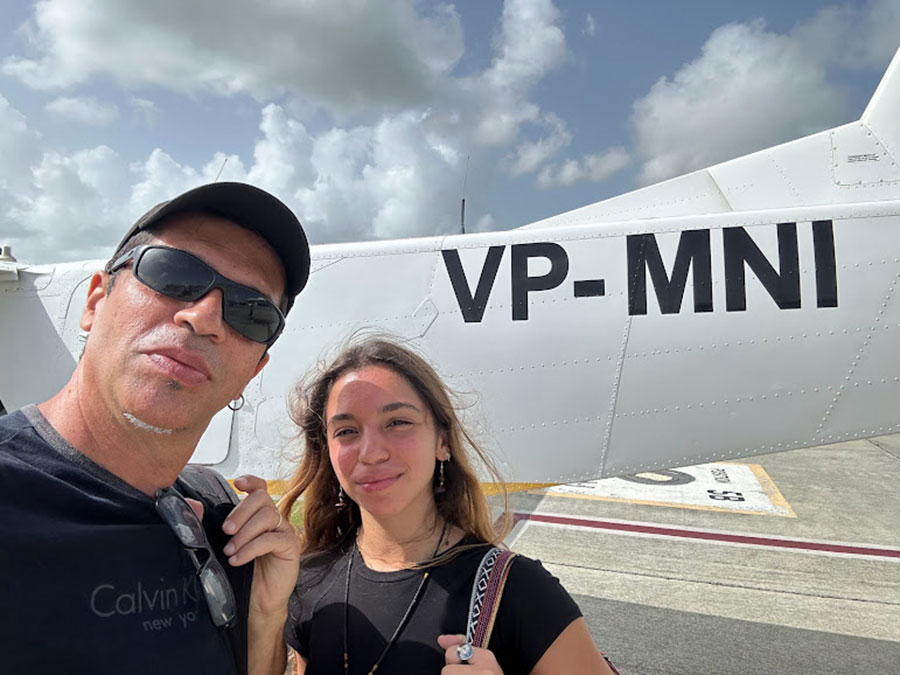Sallaberry e Thais Sallaberry ao chegar em Montserrat