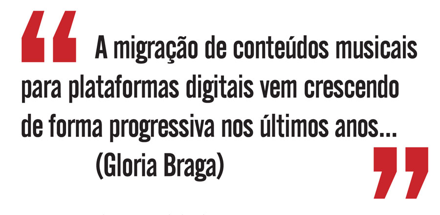 Para Gloria Braga, o futuro da música está no digital e, por isso, o Ecad vem atuando há alguns anos, no sentido de criar a conscientização das empresas de serviços de streaming de que os artistas e, principalmente, os compositores vivem dos direitos autorais. “É preciso fomentar e estimular a criação para que a indústria da música permaneça viva e ativa, afinal o conteúdo oferecido e comercializado por estas empresas é a música, então nada mais natural que haja o pagamento aos criadores dessas obras. A música é o maior bem cultural de um país. E quem faz música precisa ser valorizado e remunerado”, afirma.