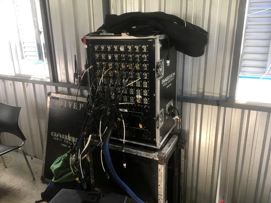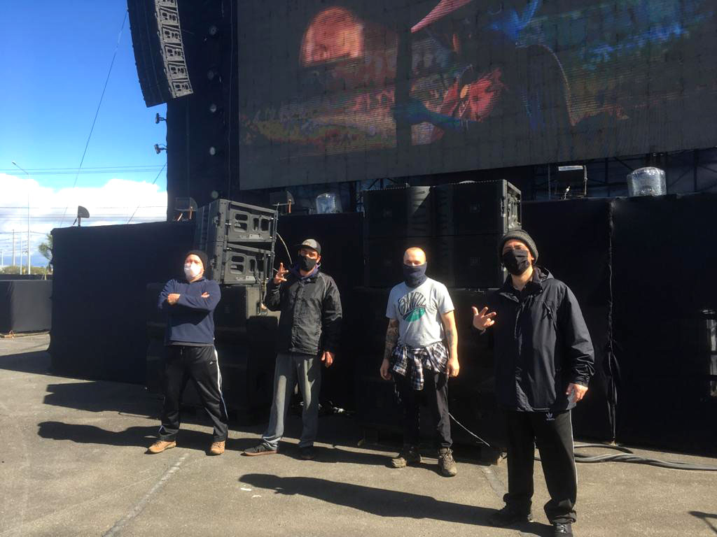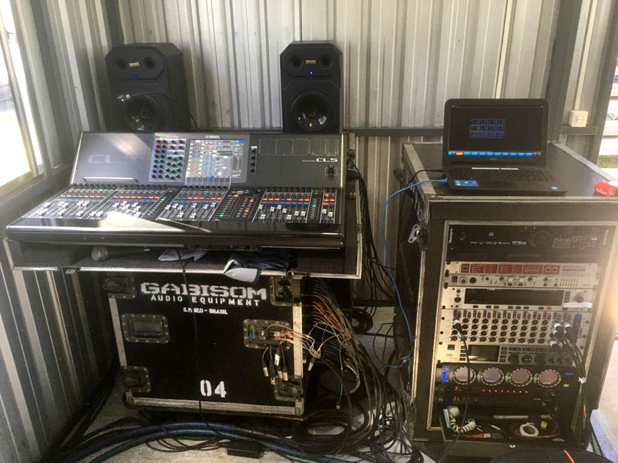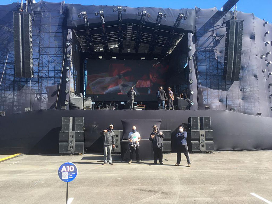 A configuração de shows funciona com LR e sub, sendo as caixas 48 VTX V25-II e os subs 24 S28. E na configuração de cinema 5.1 ao todo são 72 VTX V25-II com 24 subs S28. “O alinhamento é executado caso a caso”, explica Josiel Silva, responsável da Gabisom pelo sistema. A equipe de áudio conta com quatro pessoas além de Josiel - Dinilson Ishicava, Ivan Terleski, Ernani e Leandro Manca - para montagem e trabalho nos dias de show e duas nos dias de cinema. “Em uma situação normal faríamos a montagem em 6 pessoas. Foi necessário reduzir devido à pandemia. Acho que a idéia é bacana num momento que nossa área está precisando se reinventar. Estamos tendo a oportunidade de participar deste projeto que, até o momento, é o maior Drive in do Brasil”, conta Josiel. A Gabisom não faz a parte de transmissão em FM, mandando apenas quatro sinais em L&R para isto.