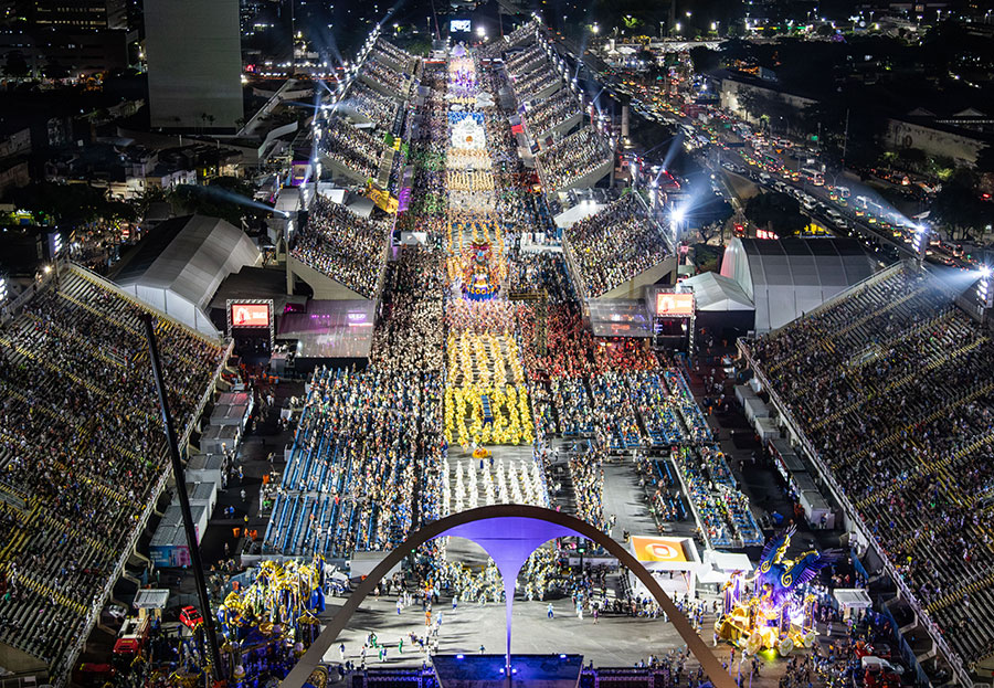 O sistema de som do Sambódromo foi distribuído ao longo da avenida com 99 caixas L-Acoustics K2 para a pista, 60 caixas L-Acoustics Kara para as frisas. 76 caixas L-Acoustics K1 para as arquibancadas; 32 caixas Norton LS-8 para as arquibancadas da Praça da Apoteose; seis caixas Norton LS-8 para o primeiro recuo da bateria dando referência para os ritmistas, quatro caixas Norton LS-8 para o segundo recuo com a mesma função; 24 caixas Norton LS-8 mais 6 L-Acoustics K1 na concentração, na Avenida Getúlio Vargas. Nos carros de som, havia sete caixas sendo três JBL VTX V25 na frente e quatro Meyer Sound Mica nas laterais.