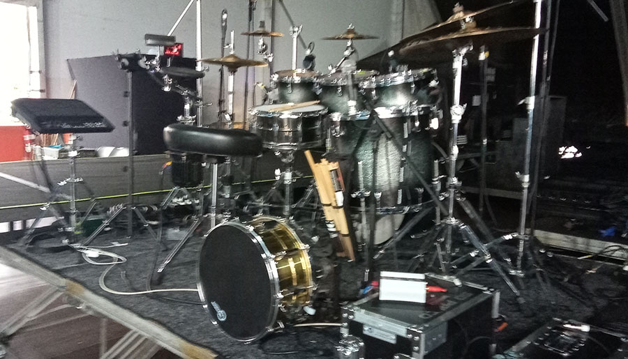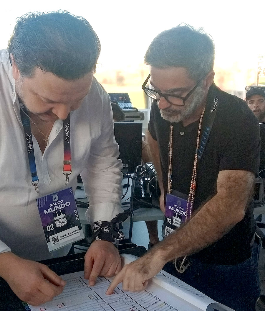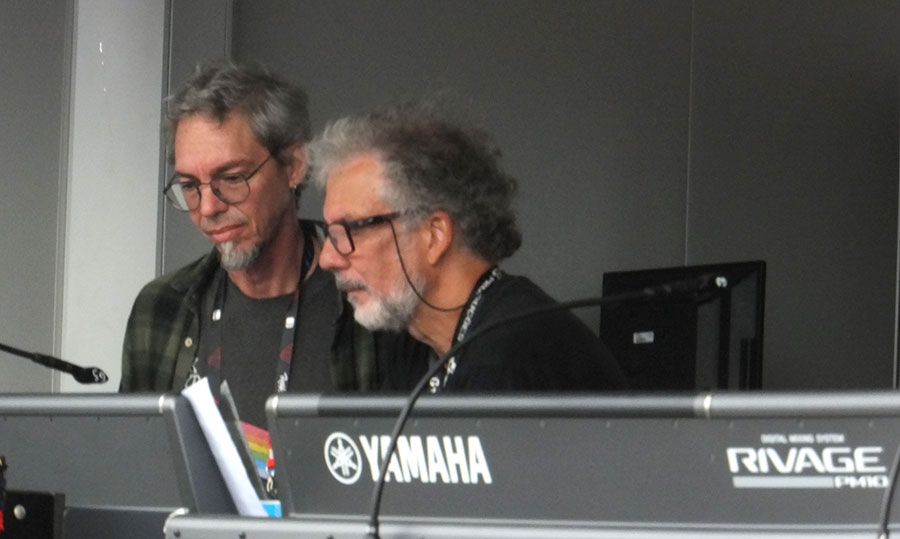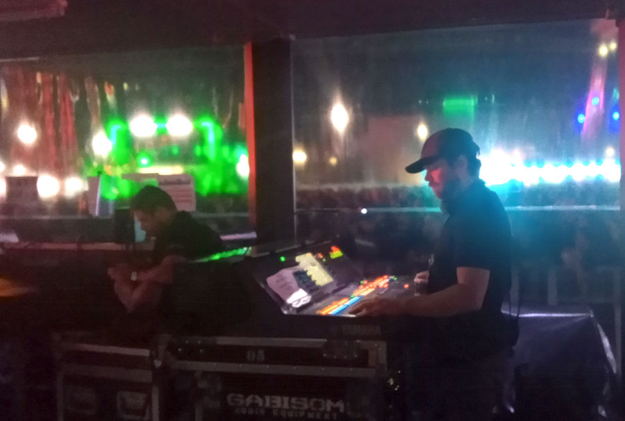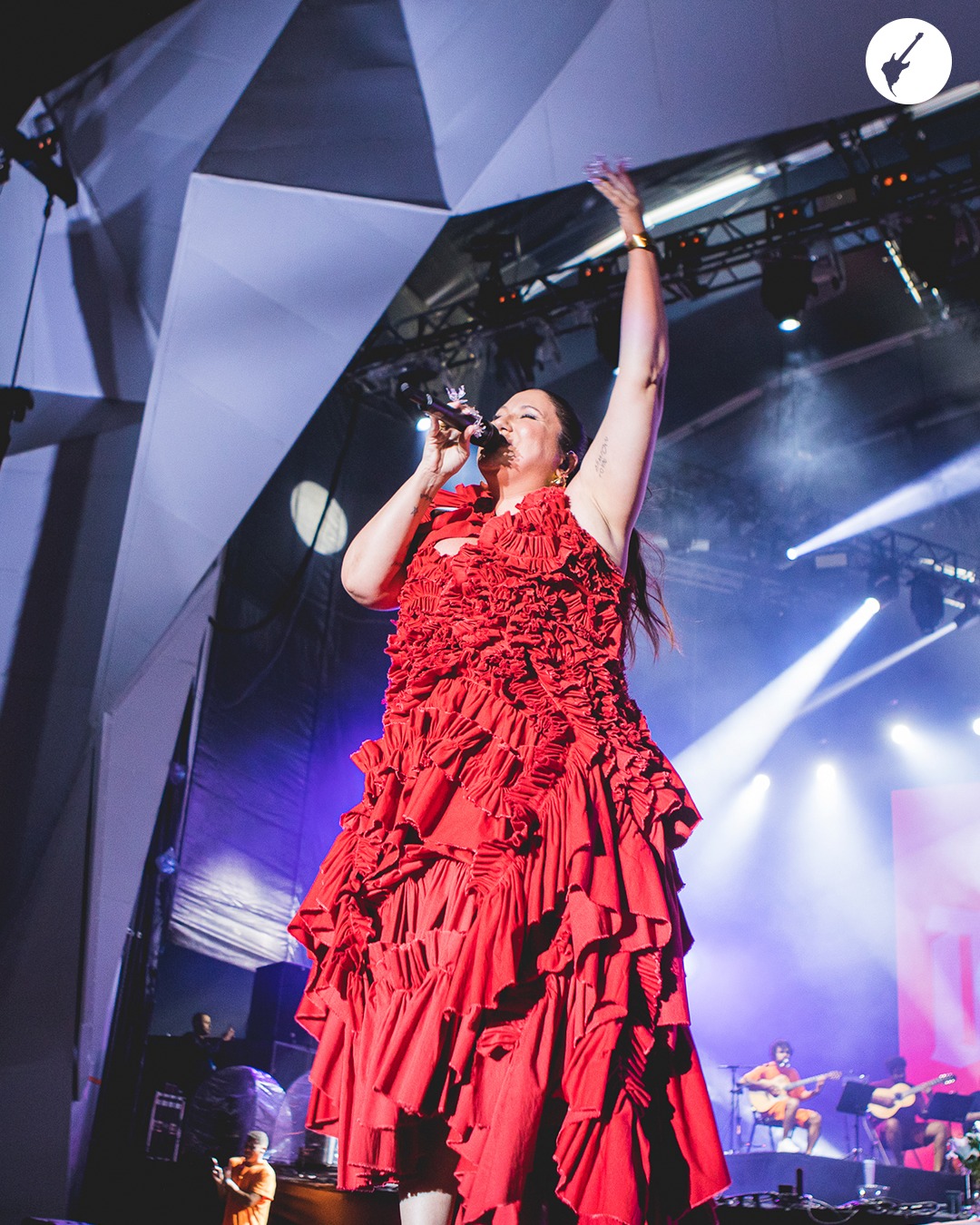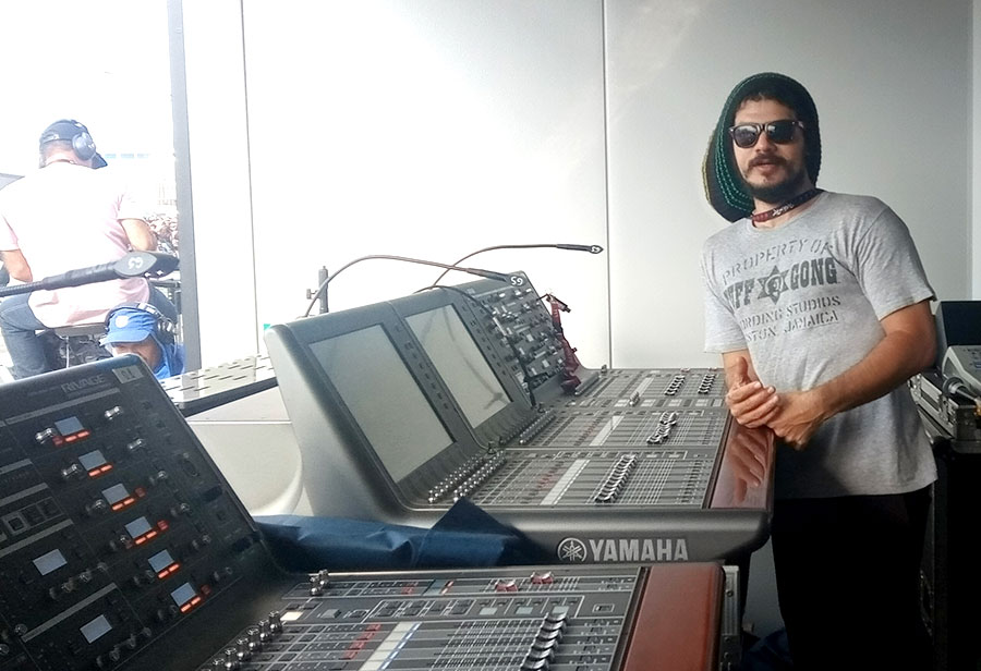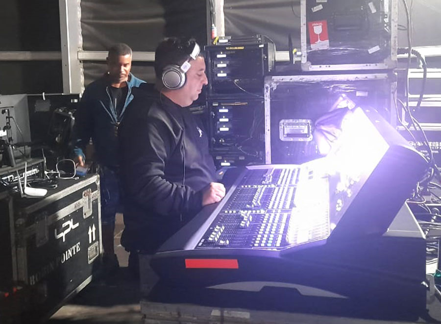 “Uso, para ela, um pré-amplificador Rupert neve 575, um microfone da Sennheiser com capsula MM 445 e uso mais um compressor. Na estrada, no show normal, geralmente vamos com batera, baixo, teclado e guitarra e mais complemento pré-gravado. Aqui viemos com mais dois músicos.”