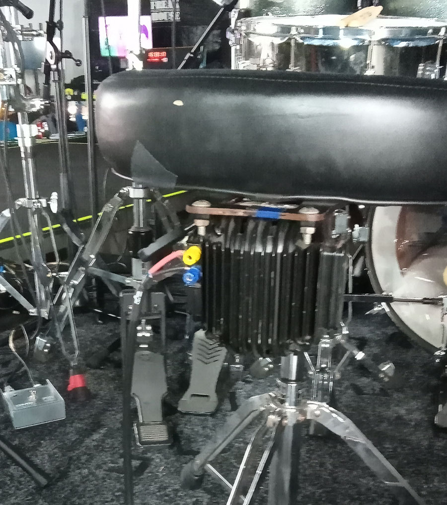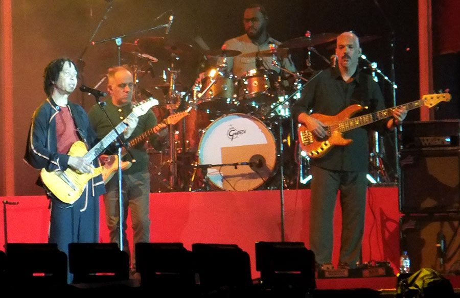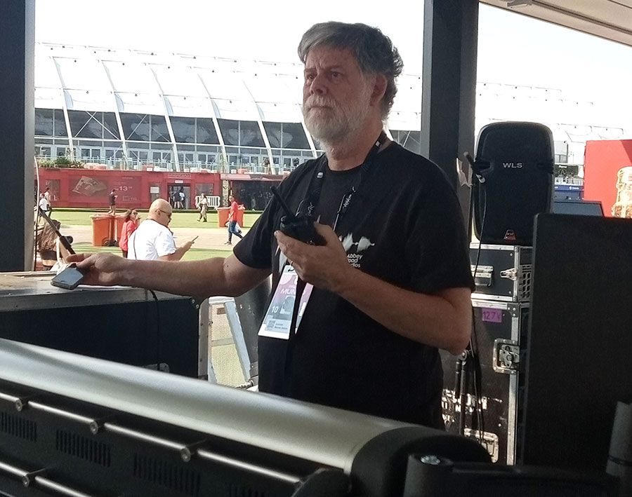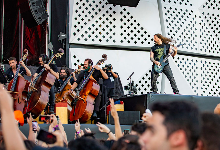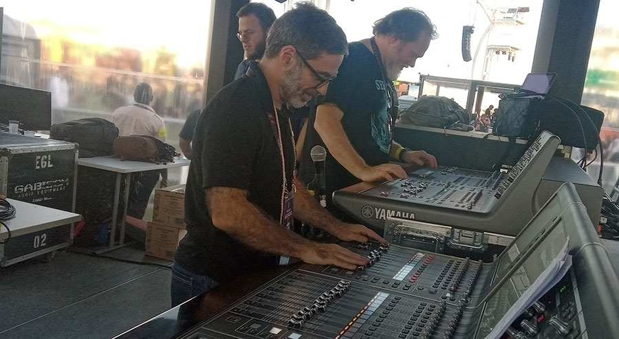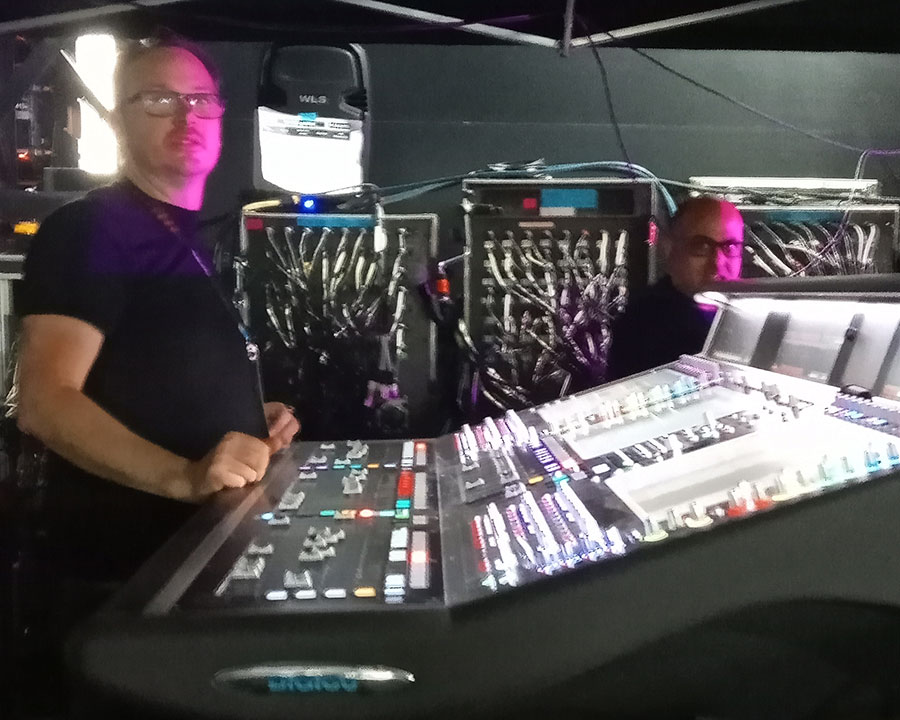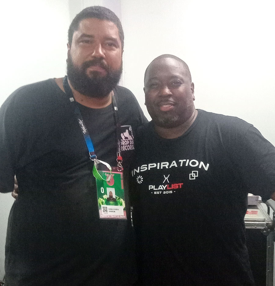 “Uso, para ela, um pré-amplificador Rupert neve 575, um microfone da Sennheiser com capsula MM 445 e uso mais um compressor. Na estrada, no show normal, geralmente vamos com batera, baixo, teclado e guitarra e mais complemento pré-gravado. Aqui viemos com mais dois músicos.”