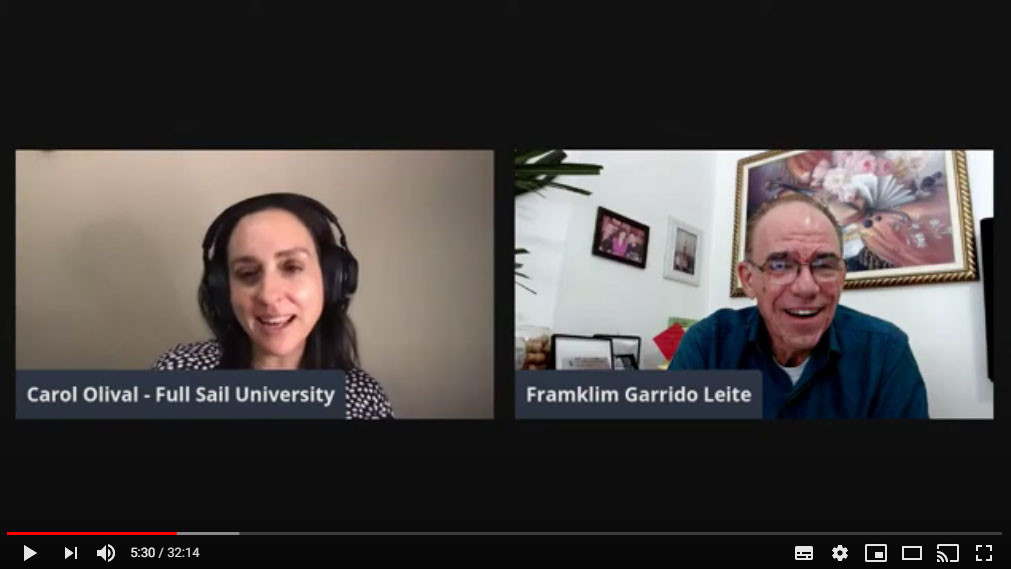 No vídeo acima, Carol Olival entrevista Framklim Garrido pela Full Sail Community Brazil. De Rolling Stones a Roupa Nova, Framklim Garrido é referência de áudio no Brasil com uma história gigantesca de contribuição e dedicação ao universo da música no país.